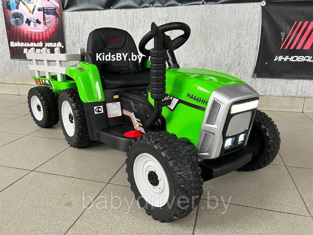 Детский электромобиль RiverToys H444HH (зеленый) трактор с прицепом и пультом