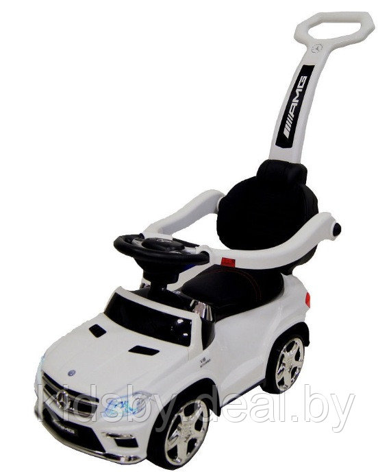 Детская машинка Каталка , толокар с ручкой RiverToys Mercedes-Benz GL63 M цвет белый Лицензия. Возраст: 1-4 лет. Максимальная нагрузка: 30 кг. Музыкальный руль: звук клаксона / мелодии заводские (от батареек). Световые эффекты: подсветка панели приборов, светятся фары передние и задние. Включение: кнопка. Колеса: резиновые. Боковые фиксаторы безопасности. Выдвижные подножки. Место для хранения. Сиденье: кожа. Съемная родительская ручка для поддержки и управления машинкой. Рулевое управление: поворотные колеса обеспечивают поворот каталки в разные стороны. Такие управляемые колеса связаны с рулем.Отдельная съемная спинка. Размер собранной модели: 65*30*29 см, вес: 4,5кг.